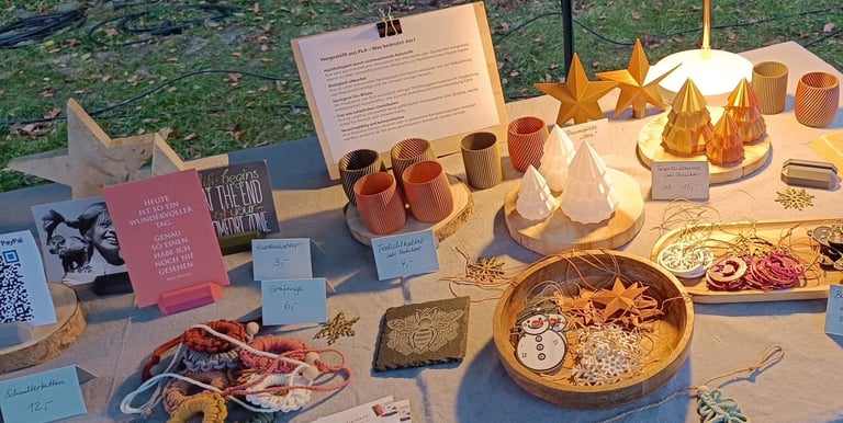 Handgefertigte Unikate aus Holz, Makramee und 3D-Druck mit Herz.
